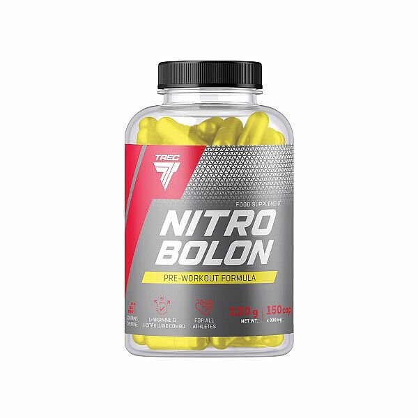 Trec Nutrition Nitrobolon Caps je jedným z prvých predtréningových doplnkov na trhu, ktorý sa osvedčil v rôznych tréningových podmienkach a ktorý vám pomáha stále zvyšovať tréningovú latku. Nitrobolón kapsule sú vynikajúcou kompiláciou zložiek, ktoré zvyšujú produkciu oxidu dusnatého (cez 5 g v dennej dávke) a kreatínu. Produkt obsahuje dve stabilné formy arginínu: malát a AAKG. Pretože mnoho orgánov v tele má vysokú potrebu arginínu, bolo zloženie Nitrobolónu obohatené o aminokyselinu citrulín v stabilnej malátovej forme, z ktorej si telo dokáže vyrobiť aj arginín, čo zaručuje maximálnu a dlhotrvajúcu svalovú pumpu. Nitrobolon Caps tak zaisťuje zvýšené prekrvenie trénovaných svalov, ale je tiež zdrojom hlavného energetického substrátu, ktorý telo potrebuje pri vysoko intenzívnych energetických procesoch - kreatínu, a to v stabilnej citrátovej forme.