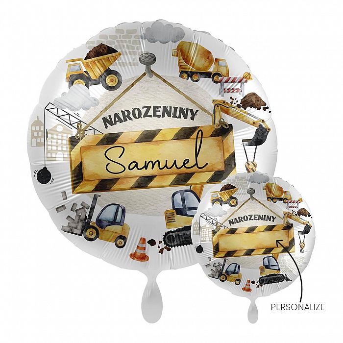 Foliový balonek Narozeniny s doplněním jména stavba 43 cm