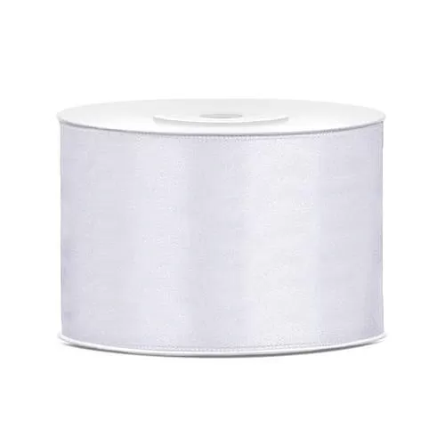 Lesklá biela saténová stuha na výrobu mašlí na auto, do kostola alebo na slavobráne. Stuhy je možné tiež kombinovať s menšími šírkami ako netradičná svadobná výzdoba sviatočnej tabule.