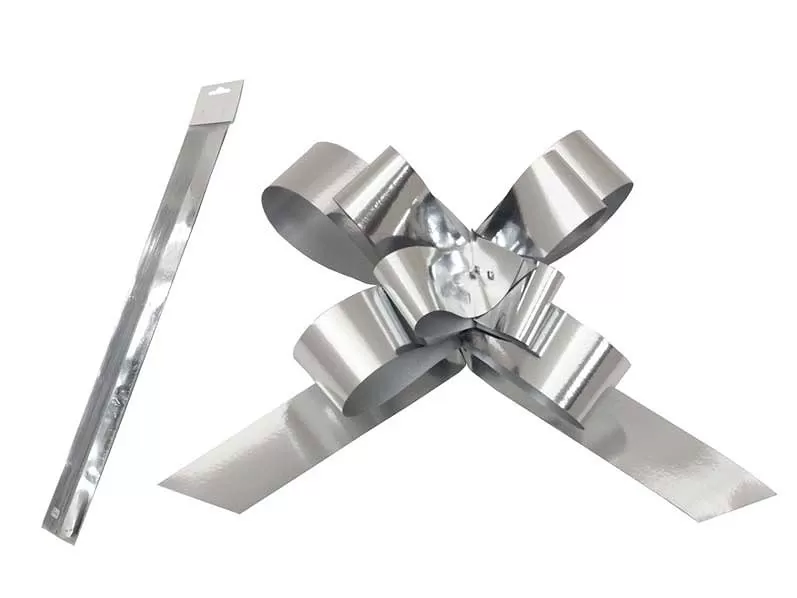 Popis: Sťahovacia stuha strieborná metalická - 2 cm x 50 cm