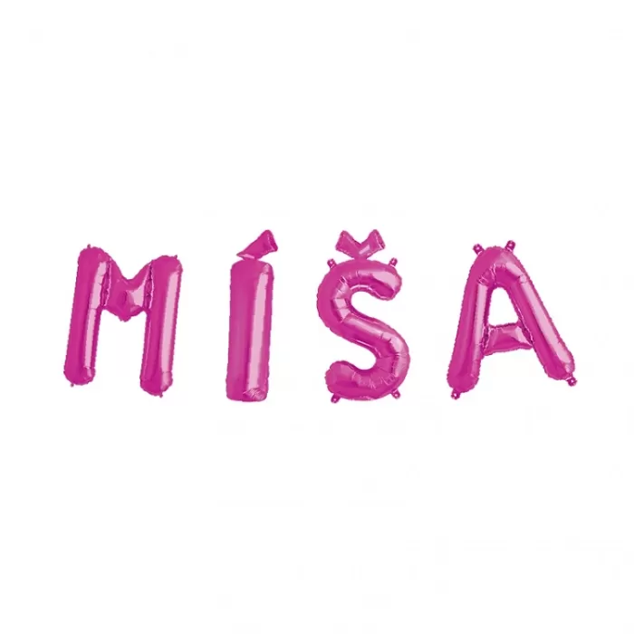 Balónový nápis - meno Míša. Skvelá dekorácia na oslavu narodenín alebo sviatku. S týmto nápisom urobíte radosť každému oslávencovi.