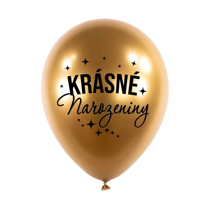 Elegantní zlatý balonek se zlatým nápisem Krásné narozeniny. Doladí jakoukoliv výzdobu, ať už pro malé nebo velké.Velikost: 30 cmBalení: 5 ks