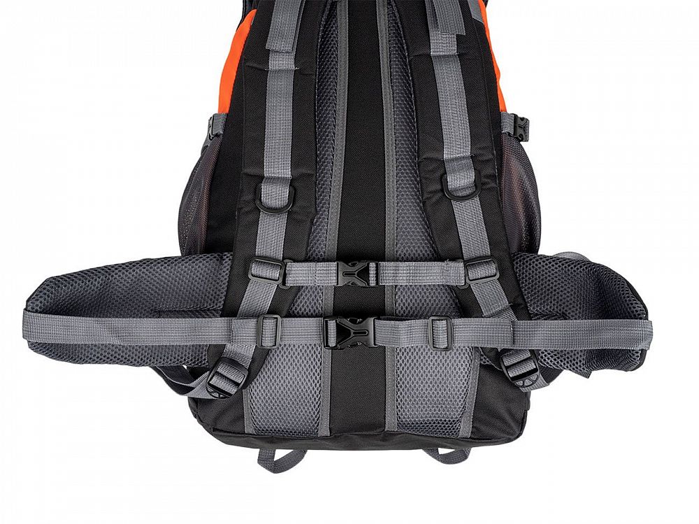 - batoh má výškovo nastaviteľné širšie polstrované anatomické ramenné popruhy a hrudné aj bedrové nastaviteľné pásy s prackami pre lepšie upevnenie batohu na tele pri dlhšom cestovaní alebo pri behu a pre celkový komfort pri nosení batohu