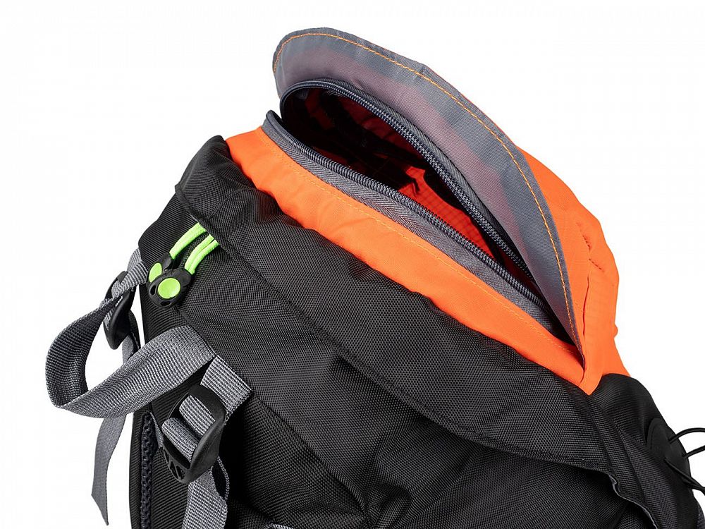 - batoh má 1 hlavnú komoru s vrchným vstupom s obojstrannými zipsami, spodnú komoru s otváraním na zips spredu pre oddelenie napr. topánok od ostatných vecí, 2 veľké sieťované vrecká so sťahovacou pružinkou po stranách batohu, jedno predné menšie vrecko s uzáverom na pracku. V zatváracom vrchnom veku batohu je ešte ďalšie vrecko s úložným priestorom na zips.