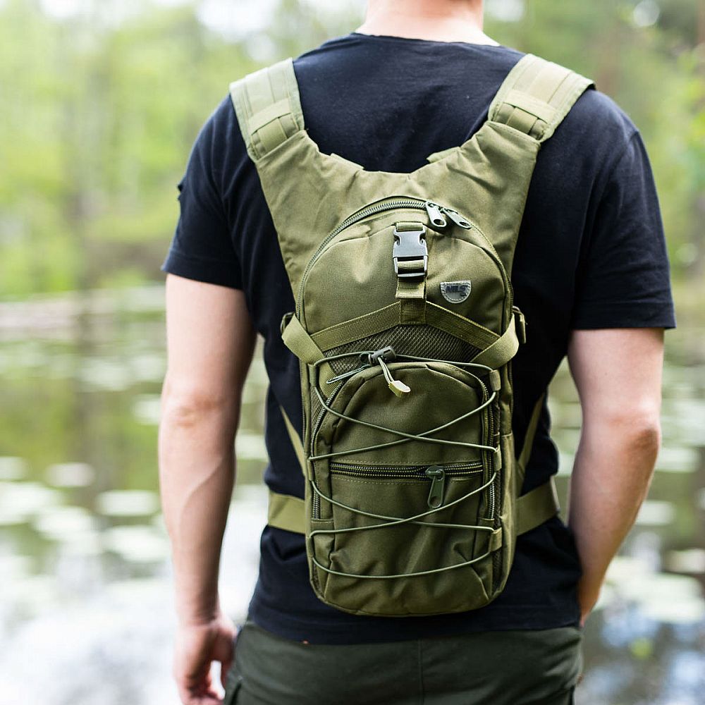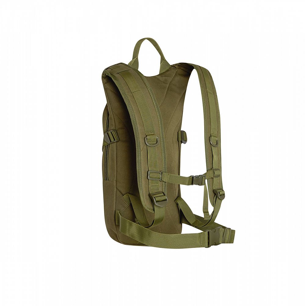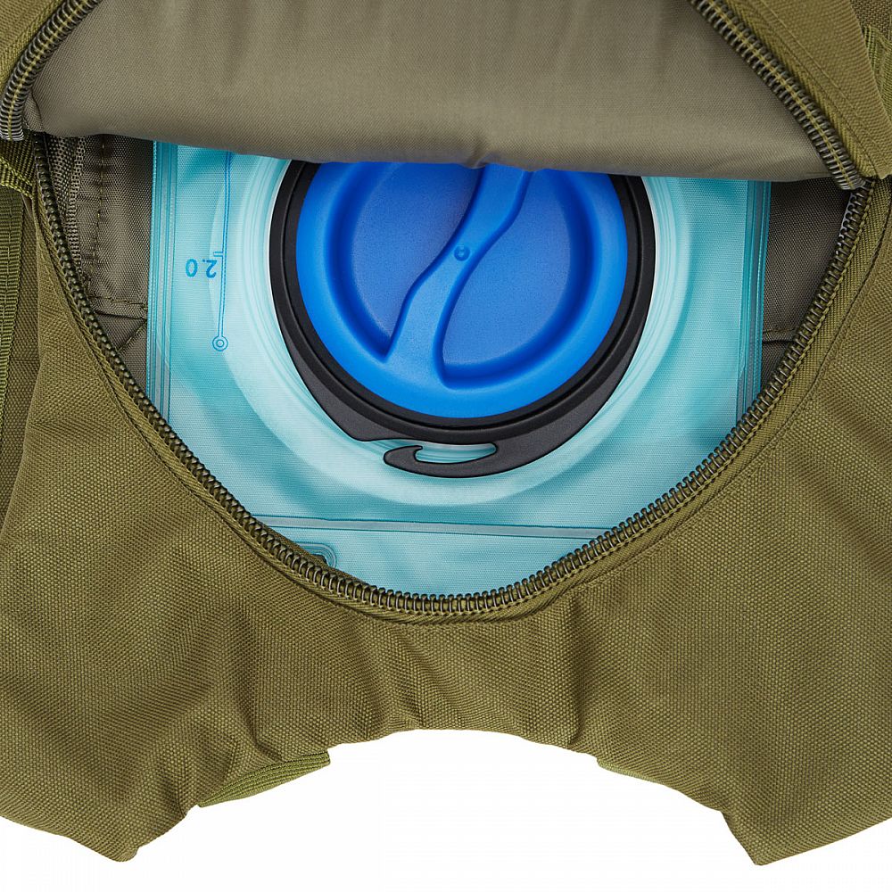 Hlavná komora batohu je opatrená prepážkou, v hornej časti sa nachádzajú 2 karabíny pre zavesenie hydrovaku (nie je súčasťou dodávky). Hadičku hydrovaku je možné vyviesť prievlakmi na pravej aj na ľavej strane pod ramennými panelmi. Na hlavnej komore sa nachádzajú ďalšie úložné priestory a to veľké sieťované vrecko s popruhom a prackou - menšie otvorené, sieťované vrecko - 2. komora na zips - vrecko na zips (napríklad pre mobilný telefón a peňaženku) a gumová šnúra s brzdičkou, pod ktorou je možné prenášať napríklad cyklistickú helmu, alebo karimatku. Po stranách batohu sa nachádzajú kompresné popruhy, ktoré sťahujú hlavnú komoru a obe sieťované vrecká. Na hornej strane je robustné ucho na pohodlné prenášanie batohu v ruke. Zadná strana a ramenné popruhy sú polyesterové bez polstrovania. Na popruhoch je gumové pútko na prevlečenie hadičky hydrovaku a hrudný popruh, ten je výškovo a dĺžkovo nastaviteľný. Bedrový popruh s robustnou prackou má šírku 3,5 centimetra.