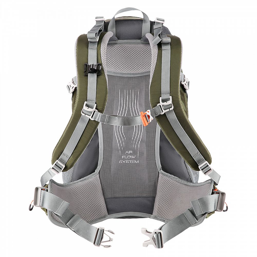 Jedinečný ventilačný systém oddeľuje hlavnú komoru od chrbtovej časti a zaisťuje cirkuláciu vzduchu a pohodlia aj v tom najteplejšom počasí. Celá váha batohu navyše spočíva na profilovanom ráme, ktorý znižuje tlak na chrbticu a zvyšuje pohodlie pri dlhých horských výletoch. Panel je spojený s bedrovým popruhom a dá sa ľahko vybrať, čím sa stane z turistického batohu batoh mestský.