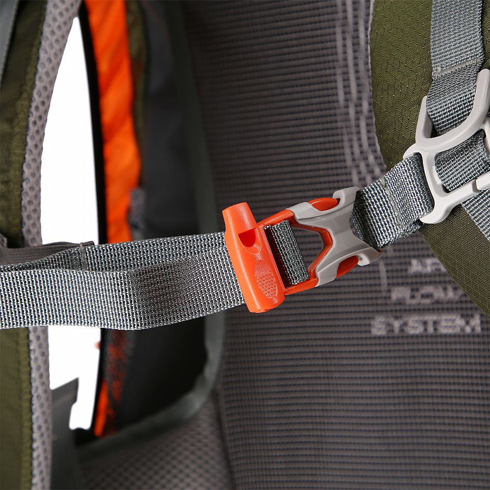 Pracka hrudného remienka funguje ako núdzová píšťalka, ktorá je nevyhnutnou súčasťou výbavy pre prípad, že by ste v núdzi potrebovali privolať pomoc. Batoh Rambler je tiež vybavený reflexným prvkom na prednej strane, ktorý zvyšuje viditeľnosť používateľa pri osvietení.