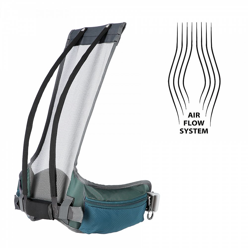 Jedinečný ventilačný systém oddeľuje hlavnú komoru od chrbta a zaisťuje cirkuláciu vzduchu a pohodlie aj v tom najteplejšom počasí. Celá váha batohu navyše spočíva na profilovanom ráme, ktorý znižuje tlak na chrbticu a zvyšuje pohodlie pri dlhých horských výletoch. Panel je spojený s bedrovým popruhom a dá sa ľahko vybrať.