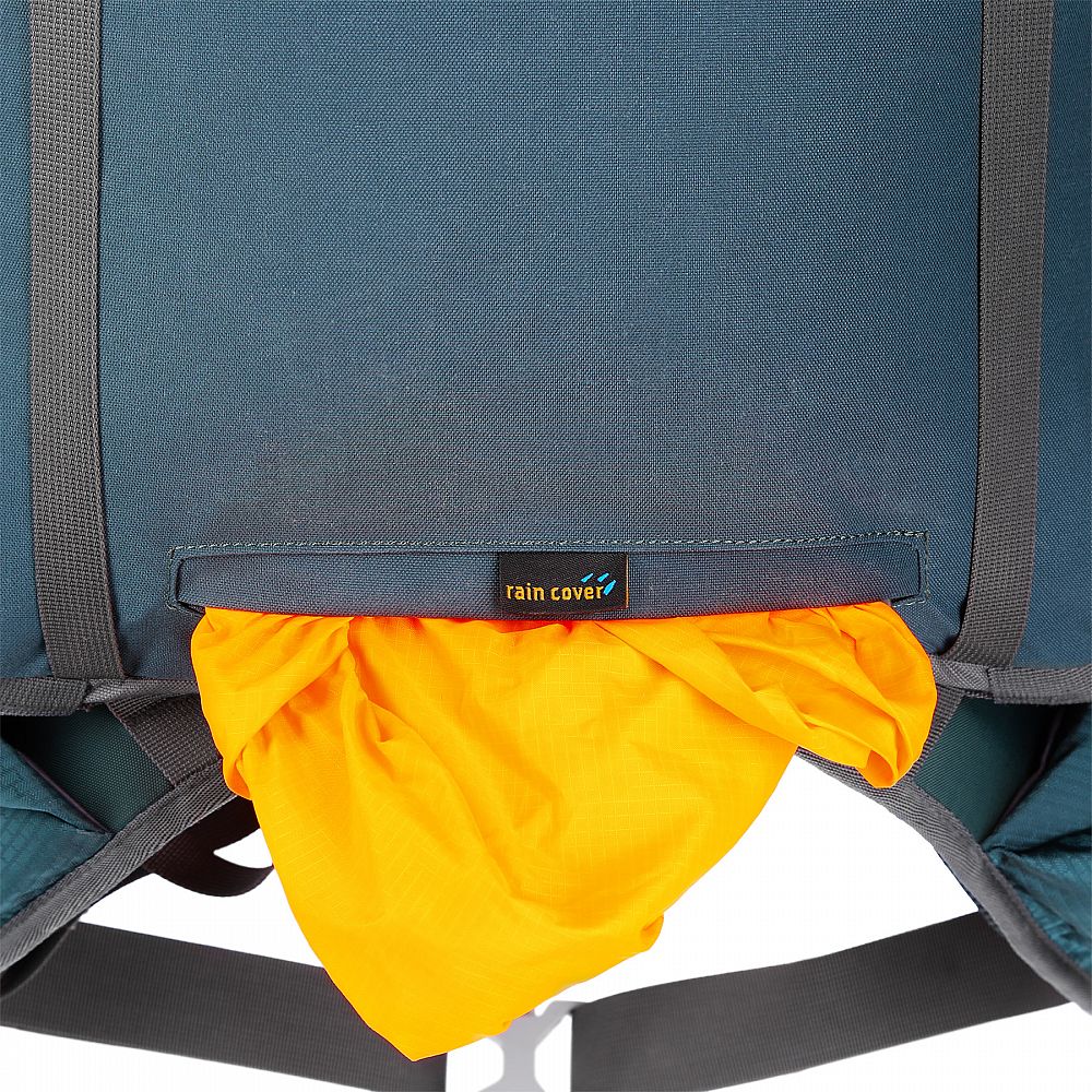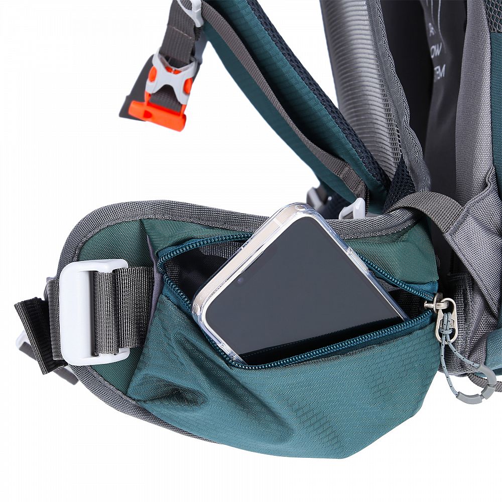 Hlavná komora sa z hornej časti uzatvára sťahovacou šnúrkou s brzdičkou a vrchlíkom na 2 plastové pracky, zo spodnej časti je možné do komory pristúpiť pomocou chlopne opatrenej dvojcestným zipsom. Po stranách batohu sú sieťované vrecká s gumičkou v leme, nad vreckami sa nachádzajú dĺžkovo nastaviteľné popruhy, pod ktoré možno umiestniť napríklad vyššiu fľašu, alebo karimatku. Z čela batohu sa nachádzajú 2 gumové pútka a 2 slučky na prenášanie turistických palíc, 7 pútok na zavesenie napríklad kempingového vybavenia alebo blikačky na zvýšenie viditeľnosti za šera. Ďalšie 2 vrecká na jednocestný zips majú svoje miesto na bedrovom popruhu. V spodnej časti batohu sú dodatočné 2 dĺžkové nastaviteľné popruhy, ktoré prechádzajú plastovým okom a sú teda rozdelené na 2 sekcie, pod tieto popruhy je možné umiestniť ďalšie vybavenie, ako napríklad menší stan, mestský batoh a pod.