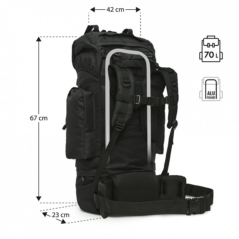 Armádny batoh NC3901 Eagle od spoločnosti NILS Camp je voľbou pre každého, kto si cení spoľahlivosť, funkčnosť a pripravenosť do akýchkoľvek podmienok. S úctyhodným objemom 70 litrov sa do neho ľahko zmestí všetko vybavenie potrebné počas niekoľkodňovej expedície - od oblečenia a jedla až po stan a karimatku. Je ideálnou voľbou pre milovníkov trekkingu, bushcraftu a survivalu, rovnako ako pre tých, ktorí sa chystajú na expedície v náročnom horskom alebo lesnom teréne.