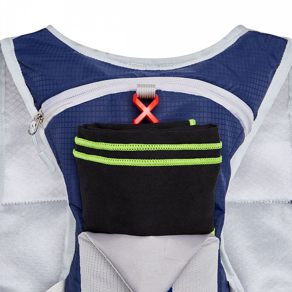 Hlavná komora batohu je opatrená prepážkou, v hornej časti sa nachádza pútko s karabínou, na ktoré visí oddeliteľný vak, do ktorého je možné batoh zložiť a môžete ho mať ako záložný batoh vo svojej hlavnej batožine. Vedľa pútka nájdeme 2 suché zipsy na zavesenie hydrovaku (nie je súčasťou dodávky). Hadičku hydrovaku je možné vyviesť prievlakmi na pravej aj na ľavej strane pod ramennými panelmi. Predné sieťované vrecko sa uzatvára na pracku. Sieťovina je podšitá nylonom, takže vrecko nie je elastické. Pod vreckom je reflexný panel, ku ktorému si môžeme pomocou remienka pripnúť vybavenie (napríklad helmu). Na hornej strane batohu je pútko pre ľahké prenášanie Trippera v ruke. Chrbát a ramenné popruhy sú vyrobené zo sieťoviny doplnené o priedušnú penu, ktorá zvyšuje priedušnosť panelu a chrbát sa bude menej potiť. Ramenné popruhy sú opatrené reflexnými pásikmi, gumovou slučkou na pretiahnutie hadičky od hydrovaku a pružnými vreckami. Na ľavom popruhu sa navyše nachádza vrecko s priehľadnou čelnou stranou, do ktorej je možné uložiť napríklad kartičku pre prípad straty, štartové číslo a podobne. Popruhy sú spojené remienkom s plastovou prackou.