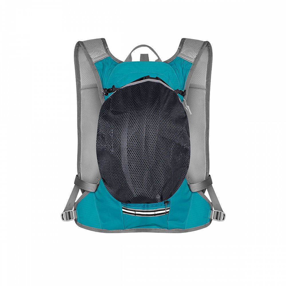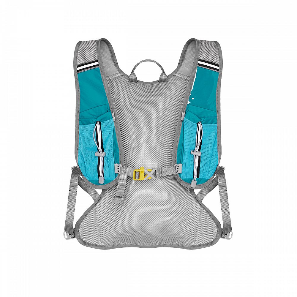 Hlavná komora batohu je vybavená prepážkou, v hornej časti sa nachádzajú 2 suché zipsy na zavesenie hydrovaku (nie je súčasťou dodávky). Zadná strana hlavnej komory je opatrená hliníkovou fóliou, ktorá slúži ako izolácia medzi hydrovakom a chrbtom, takže nápoj sa nebude ohrievať teplom od chrbta. Hadičku hydrovaku je možné vyviesť prievlakmi na pravej aj na ľavej strane pod ramennými panelmi. Predná strana batohu je opatrená gumovým lankom s brzdičkou, pod ktoré je možné uložiť napríklad karimatku. Nižšie nájdeme vrecko, v ktorom sa skrýva sieťka, ktorú je možné vytiahnuť a pomocou karabínok pripnúť k stranám batohu, sieťka následne vytvorí vrecko, čo ktoré môžeme uložiť napríklad cyklistickú helmu, ešus a pod.. Pod vreckom je reflexný panel, ku ktorému si môžeme pripnúť ďalšie vybavenie. Na pravej strane sa skrýva ďalšie vrecko na zips, ktoré je ideálne pre telefón, peňaženku, alebo napríklad kľúče. Na hornej strane batohu je pútko pre ľahké prenášanie batohu v ruke. Chrbát a ramenné popruhy sú vyrobené zo sieťoviny doplnené o priedušnú penu, ktorá zvyšuje priedušnosť panelu a chrbát sa bude menej potiť. Ramenné popruhy sú opatrené reflexnými remienkami na pretiahnutie hadičky od hydrovaku a vreckami zo sieťoviny. Na ľavom popruhu sa navyše nachádza vrecko s priehľadnou čelnou stranou, do ktorej je možné uložiť napríklad kartičku pre prípad straty, štartové číslo a podobne. Ramenné popruhy sú spojené hrudným pásom, ktorý je možné výškovo nastaviť. Popruh je spojený plastovou prackou s píšťalkou.