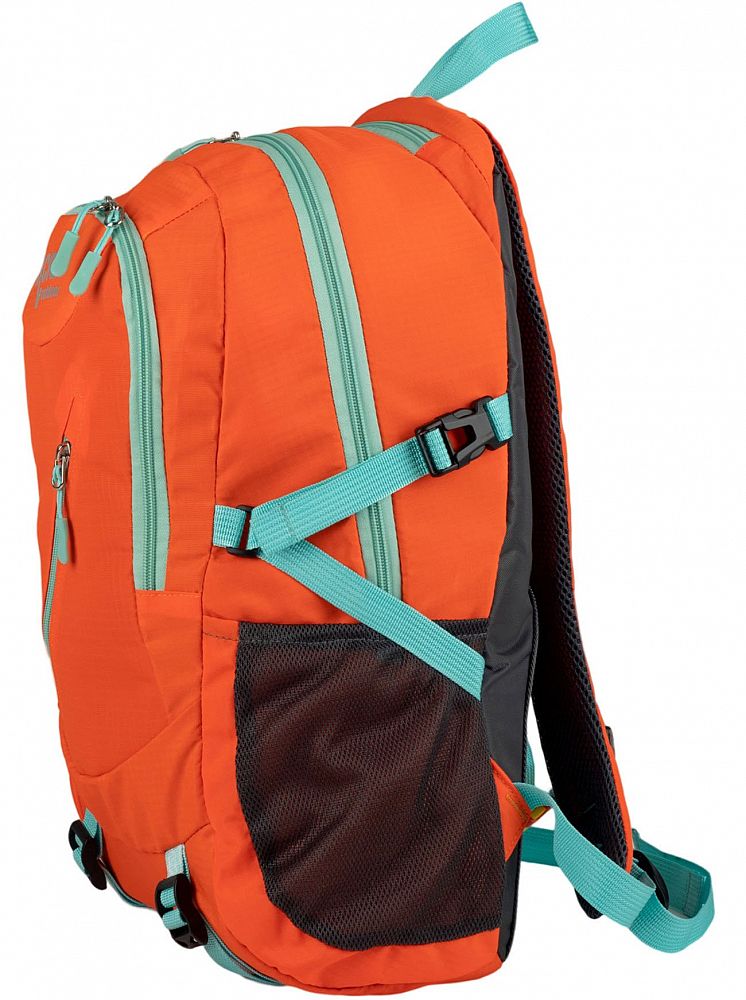 - batoh má 2 hlavné komory s vrchným vstupom, 2 sieťované vrecká po stranách batohu, 1 predné vrecko na zips, 1 vrchné vrecko na zips, predné otvorené vrecko a ucho na ľahké nosenie na hornej strane batohu. V hlavnej komore je ešte všité veľké vrecko napríklad na notebook alebo len pre prehľadnejšie rozmiestnenie prenášaných vecí