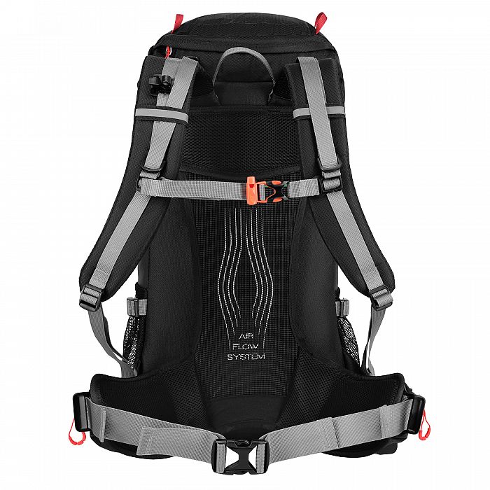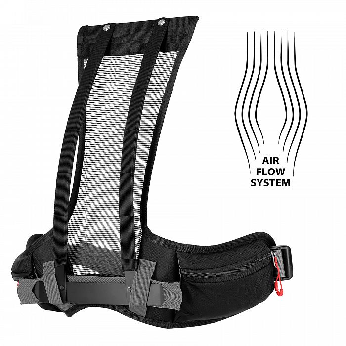Na pracke hrudného popruhu je integrovaná záchranná píšťalka, ktorá zvyšuje bezpečnosť používateľa. Prídané pútka umožňujú pripevniť napríklad trekové palice alebo iné príslušenstvo.