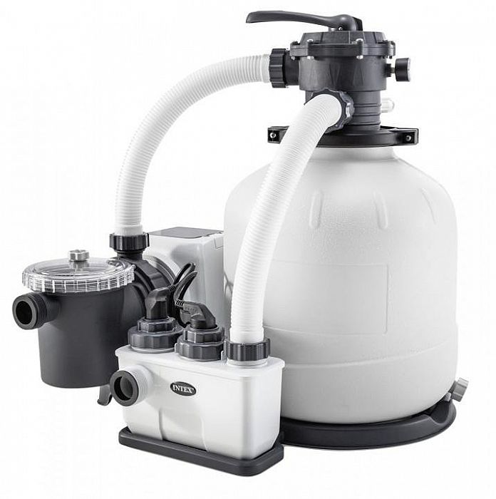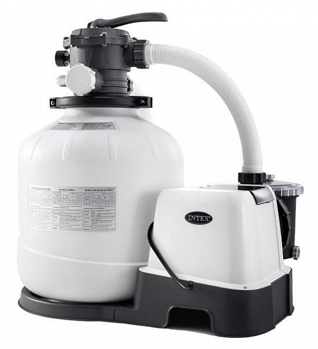 Vysokovýkonná filtrácia pre všetky INTEX bazény. Kremičitý piesok, ktorý kladie pretekajúcej vode z bazéna prirodzený odpor, zachytáva v medzerách väčšinu nečistôt. Vyčistená voda sa potom opäť vracia späť do bazéna. Piesková filtrácia a jej princíp sa používa i pri čistení pitných vôd. Kvalitná výkonná piesková filtrácia Intex Krystal Clear so zabudovaným solinátor zaistí optimálnu filtráciu pre váš bazén a obmedzí používanie bazénovej chémie. Táto filtrácia prefiltruje 10 m3 bazénovej vody za hodinu. Filtrácia je primárne určená k bazénom Intex, Bestway a Tampa, tomu sú prispôsobené aj všetky pripojenia, na ktoré naskrutkujete klasickej bielej hadica s priemerom 38 mm so sivou závitovou koncovkou.