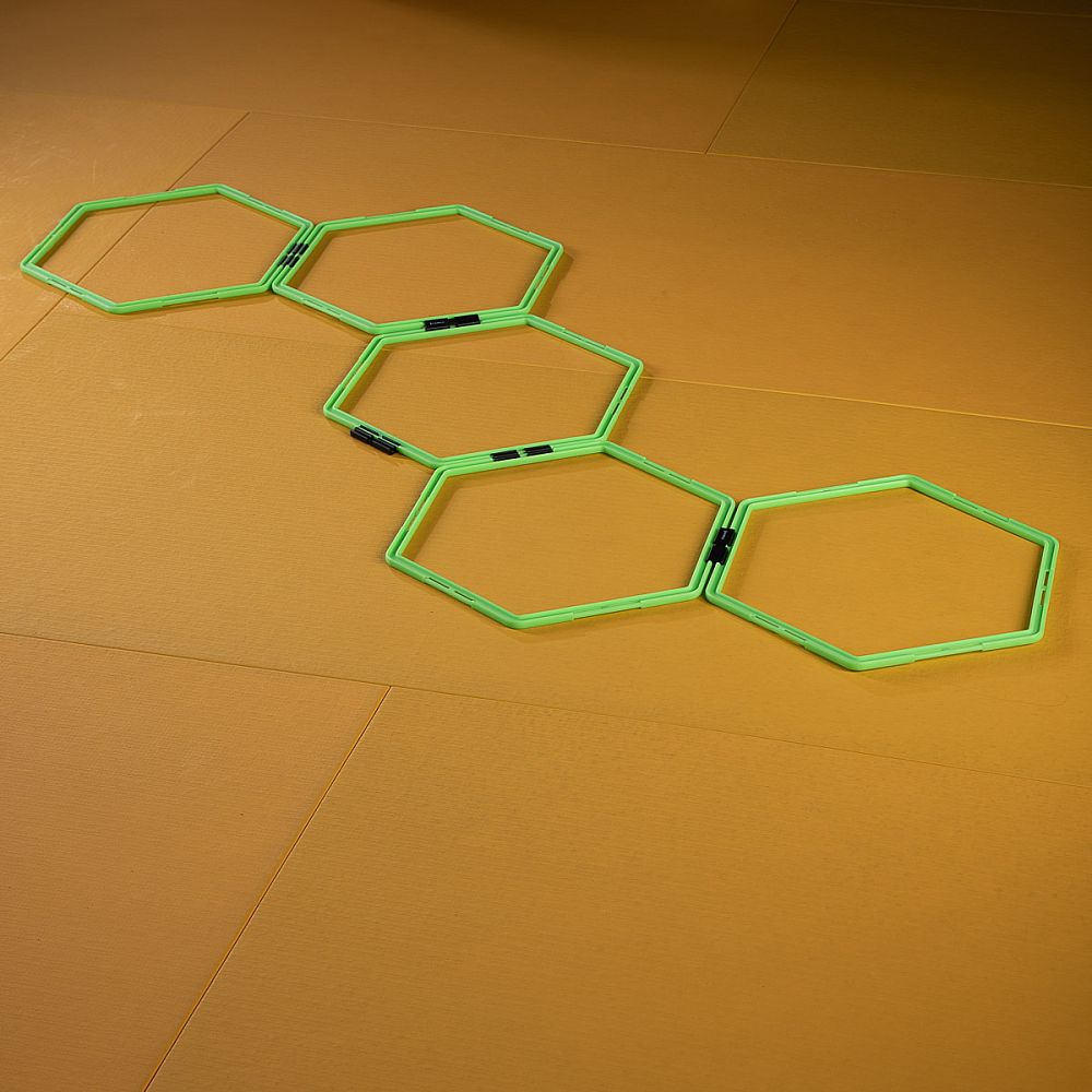 Agility HEX rebrík HMS SKR06 je skvelou pomôckou pre rozvoj fyzických zdatnosťou. Tento rebrík slúži k rozvoju koordinácie, rýchlosti a obratnosti. SKR06 nájde uplatnenie v každom športe, kde sú tieto parametre potrebné. Vďaka spojkám, možno šesťuholníky podľa potreby rôzne tvarovať, aby vyhovovali Vášmu tréningu.
