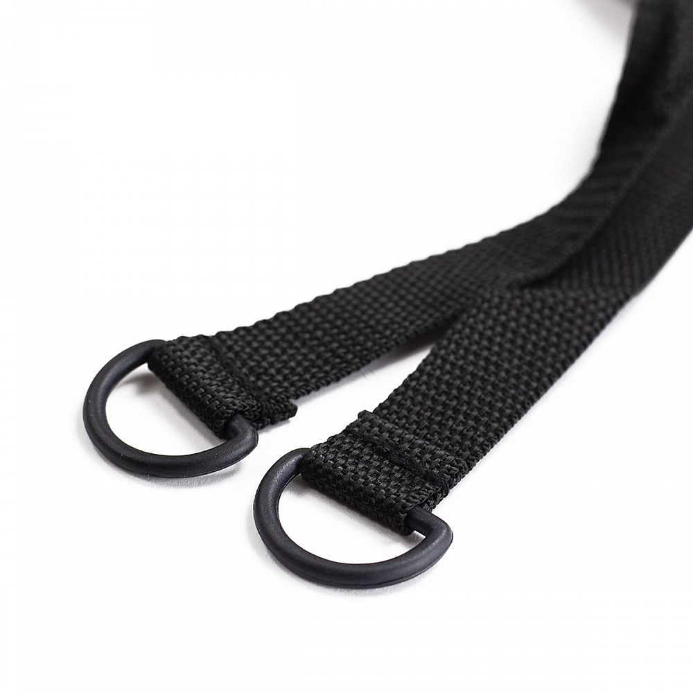 Priečky je možné plynule posúvať a po nastavení vhodných rozostupov je možné priečky zafixovať pomocou dvoch otvorov v každej z nich. Konce remienkov sú opatrené očkami pre zaistenie proti posunutiu rebríka.