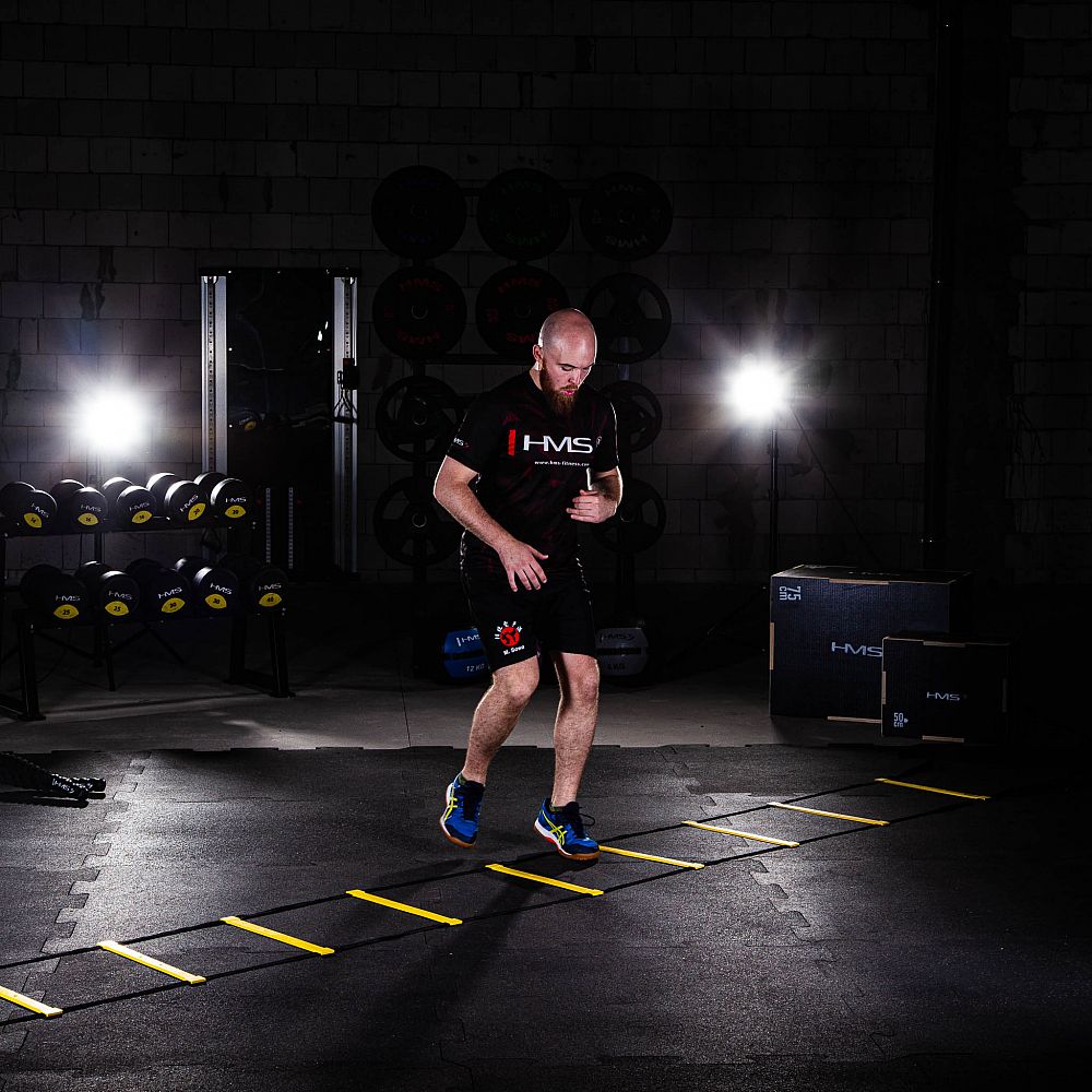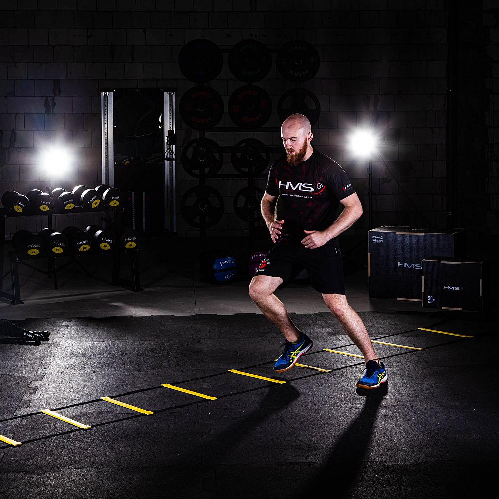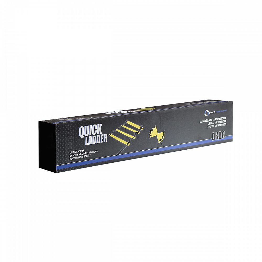 HMS Premium DK06 je pomôcka pre kondičnú prípravu športovcov. Rozvíja tiež rýchlosť, vytrvalosť a koordinačné schopnosti. Tréningový rebrík HMS má 6 metrov a 12 nastaviteľných priečok, čo je ideálny pomer pre kvalitný tréning. DK06 je vhodný pre vnútorné priestory ako je posilňovňa, cvičebný hala a iné, ale aj všetky vonkajšie priestory. Súčasťou balenia je aj prenosný vak, takže môžete mať rebrík vždy po ruke.