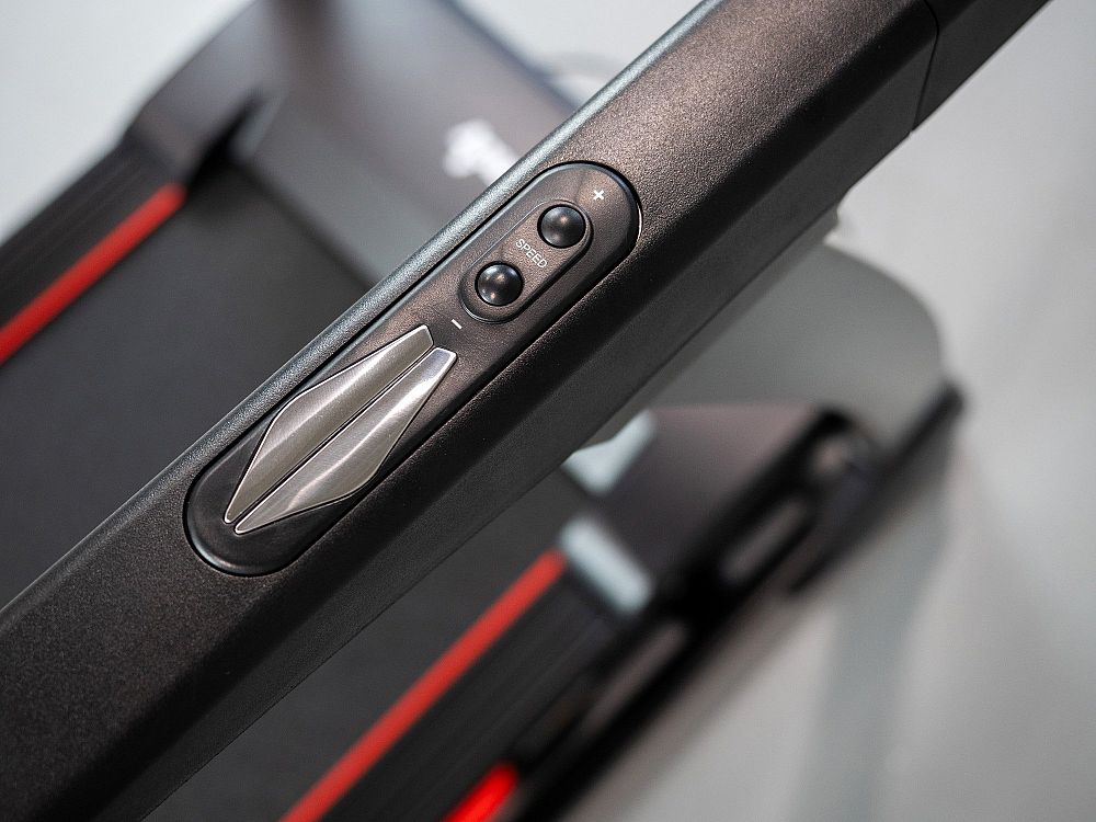 Pás tiež disponuje bezpečnostnou rýchlobrzdou, ktorá umožňuje okamžité zastavenie v prípade potreby. Sklon pásu je možné elektricky nastaviť v rozmedzí 0-15 % priamo z rukovätí, čo umožňuje plynulú zmenu počas behu.
