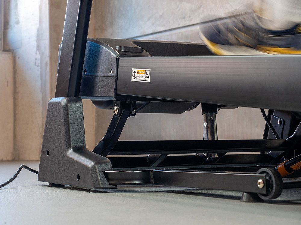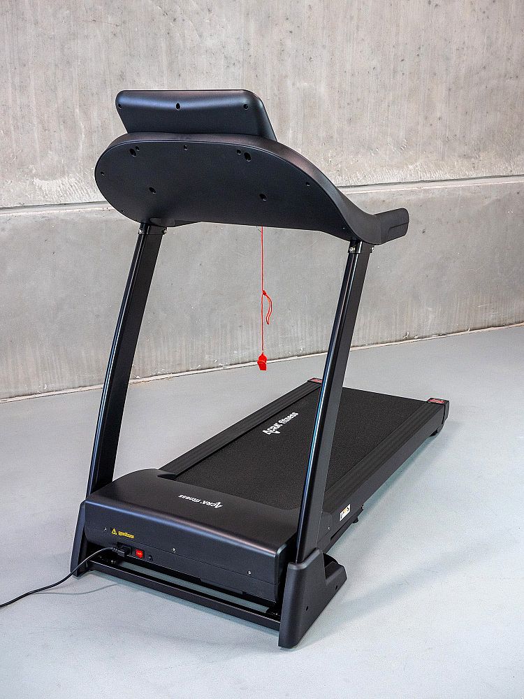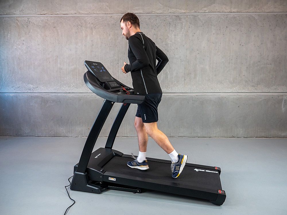 Pás tiež disponuje bezpečnostnou rýchlobrzdou, ktorá umožňuje okamžité zastavenie v prípade potreby. Sklon pásu je možné elektricky nastaviť v rozmedzí 0-15 % priamo z rukovätí, čo umožňuje plynulú zmenu počas behu.