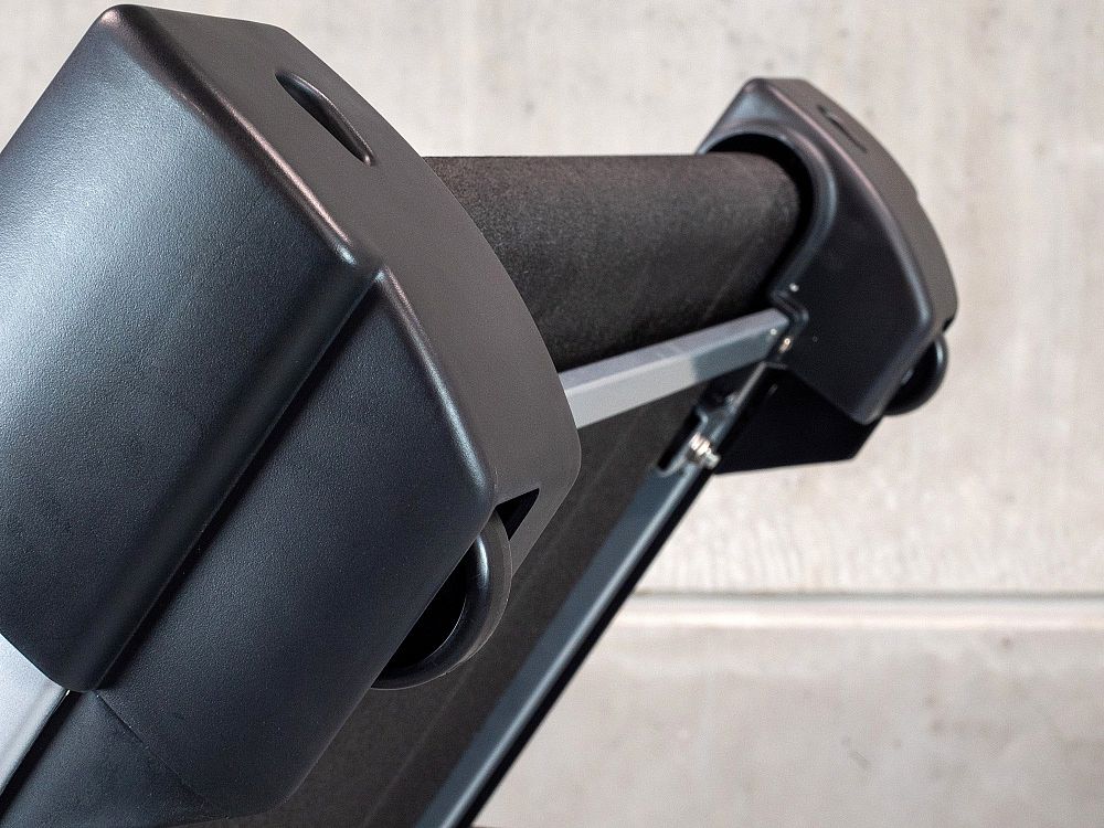 Pre úsporné skladovanie je možné behaciu časť zdvihnúť medzi rukoväte a vďaka kolieskam pás ľahko premiestnite v skladovacej polohe.