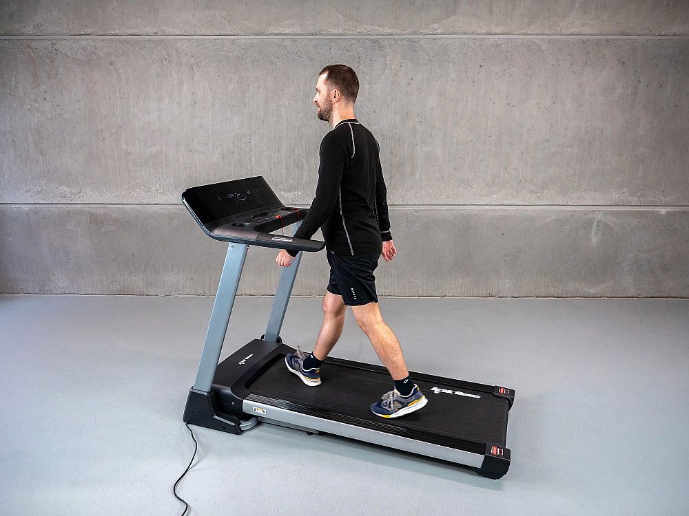 Pás je poháňaný elektromotorom s konštantnou rýchlosťou 2,0 HP a umožňuje nastavenie rýchlosti v rozmedzí 1-18 km/h. Ovládací panel je vybavený rukoväťami so snímačmi tepovej frekvencie a možnosťou regulácie záťaže.