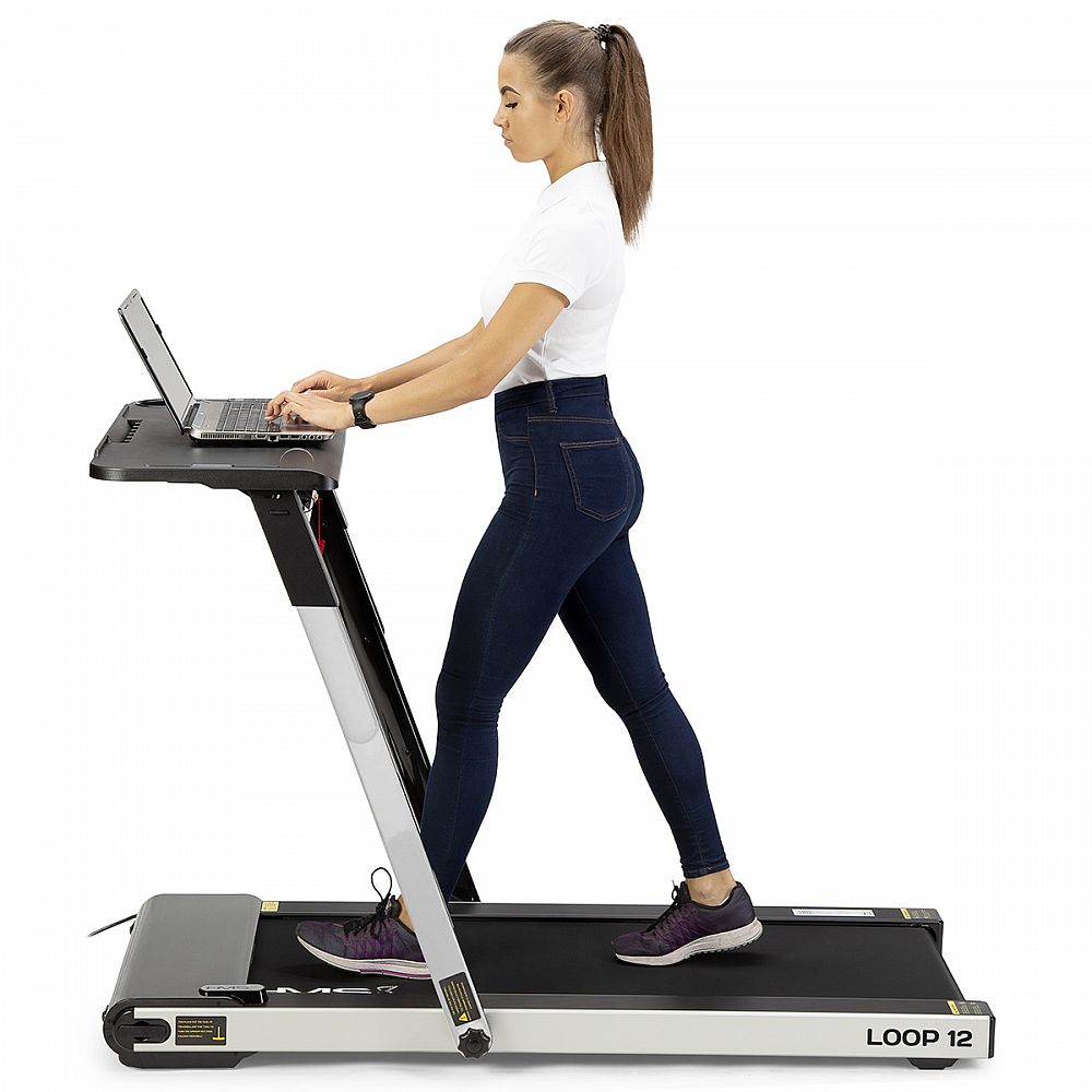 Náš model LOOP12 sa od konkurencie odlišuje možnosťou nasadenia pracovného pultu, na ktorý si môžete odložiť napríklad notebook, knižku alebo obľúbenú kávu. Po nasadení stola sa rýchlosť bežeckej plochy obmedzí na maximálnu rýchlosť 6 km/ha po prepojení pultu s konzolou je možné upravovať rýchlosť priamo z ovládania na pravej strane stola.