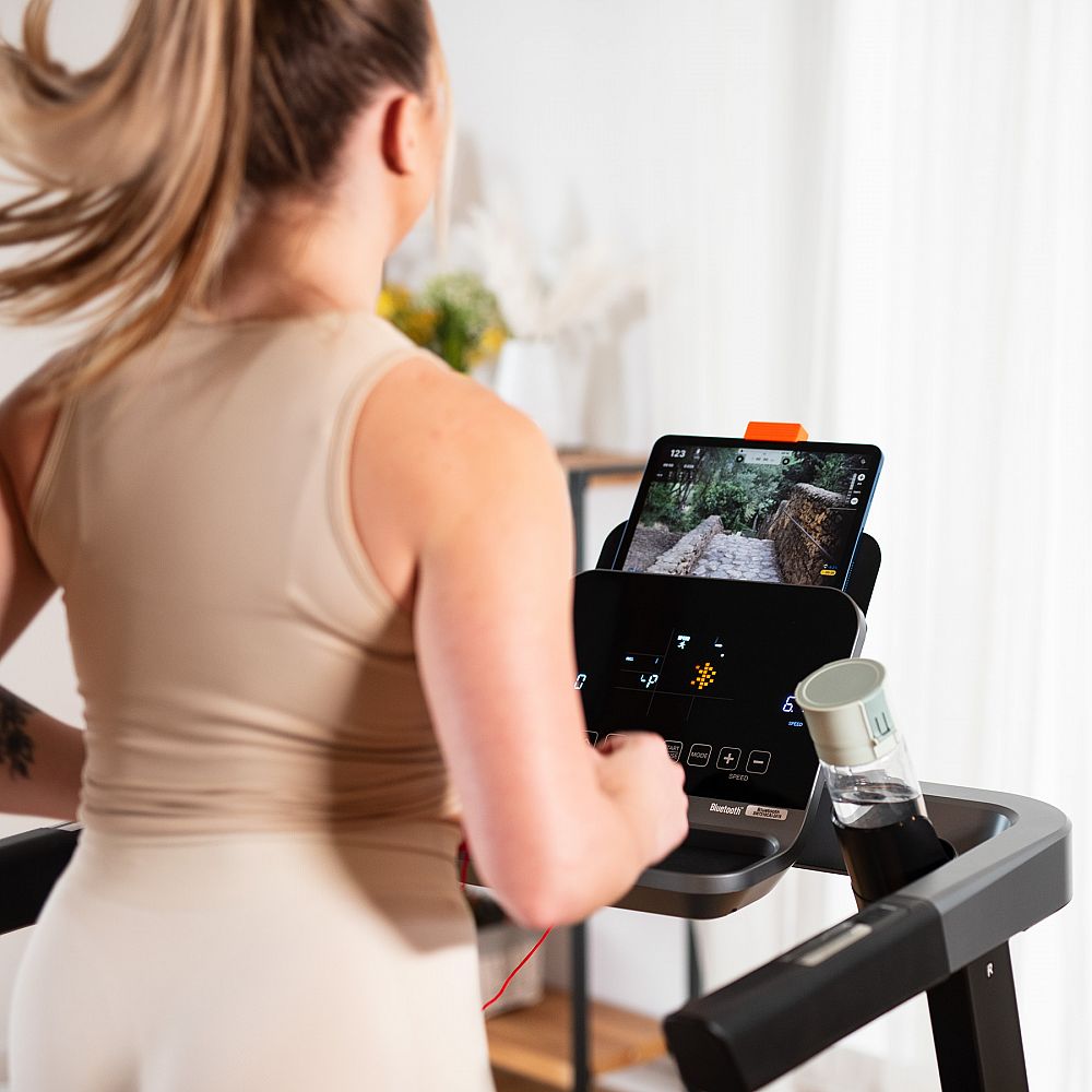 Bežecký pás BE5873 je vybavený technológiou Bluetooth, ktorá umožňuje pripojenie k tréningovým aplikáciám, ako sú Kinomap, Zwift a AnyRun. Bežecký pás je navyše vybavený reproduktorom, takže môžete pri cvičení počúvať svoju obľúbenú hudbu a používať tréningové aplikácie.