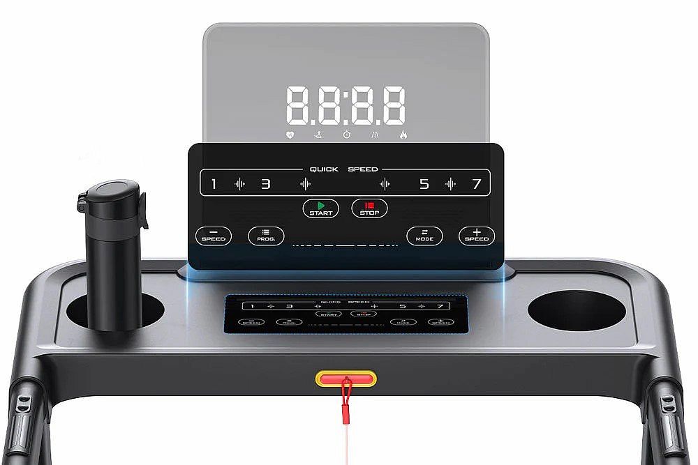 Rýchlosť môžete kedykoľvek upraviť pomocou diaľkového ovládania alebo displeja. LED displej umožňuje sledovať v reálnom čase údaje o tréningu, ako je čas, kalórie, rýchlosť, vzdialenosť a srdcová frekvencia.