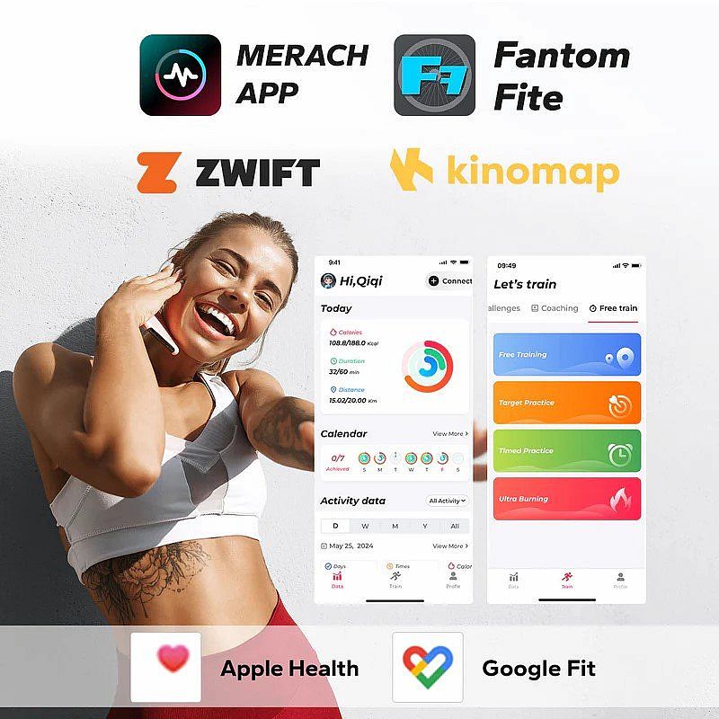 Merach, Kinomap, Zwift, Apple Health, Google Fit, Fanton Fite (od Merach)