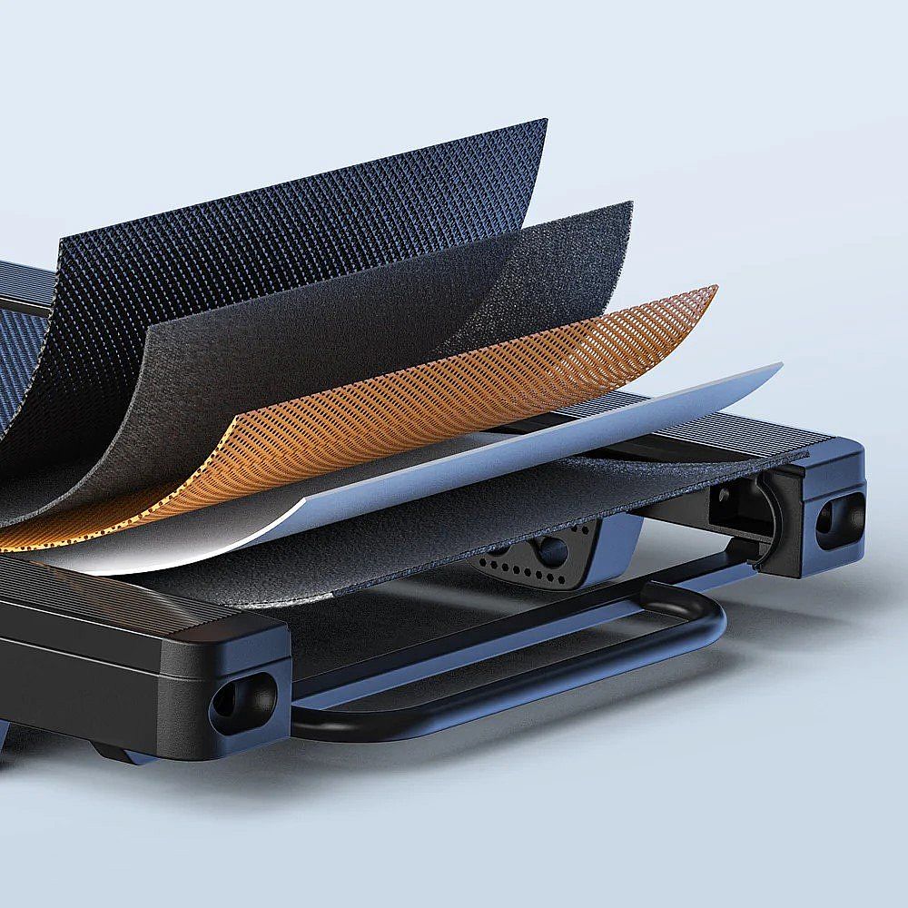 Vďaka 5-vrstvovému protišmykovému bežeckému pásu a 2 silikónovým tlmičom nárazov poskytuje tento bežecký pás všestrannú ochranu kĺbov počas tréningu.
