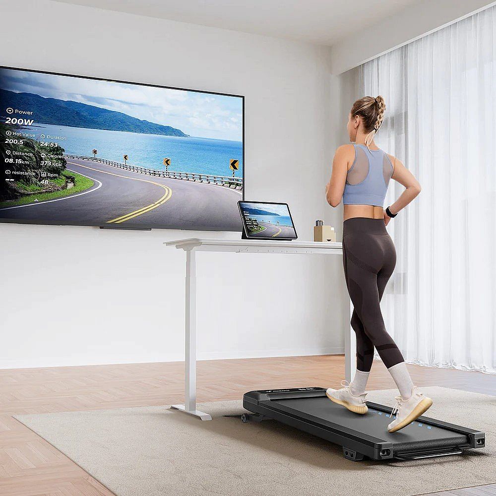 Tento bežecký pás sa synchronizuje s aplikáciou Bluetooth, takže môžete sledovať svoj pokrok a užiť si virtuálny tréning vonku z pohodlia domova.