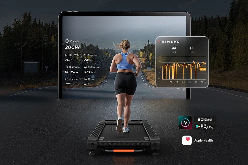 Spaľte až o 30 % viac kalórií vďaka plynulo nastaviteľnému sklonu (0–12 %) pomocou diaľkového ovládača. Aktivujte režim stúpania a zamerajte sa na zadok – ideálny pre rehabilitačný tréning alebo domáci HIIT.