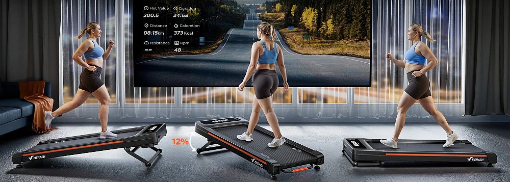 MERACH T25 WalkPad s automatickým sklonom 12%, nosnosť 181 kg,
