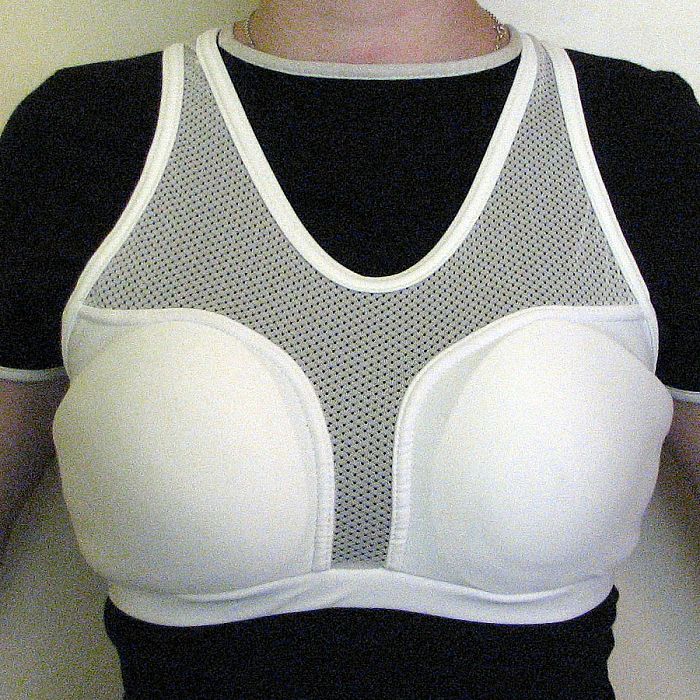 - Chránič znižuje účinky úderov na hrudník a prsia