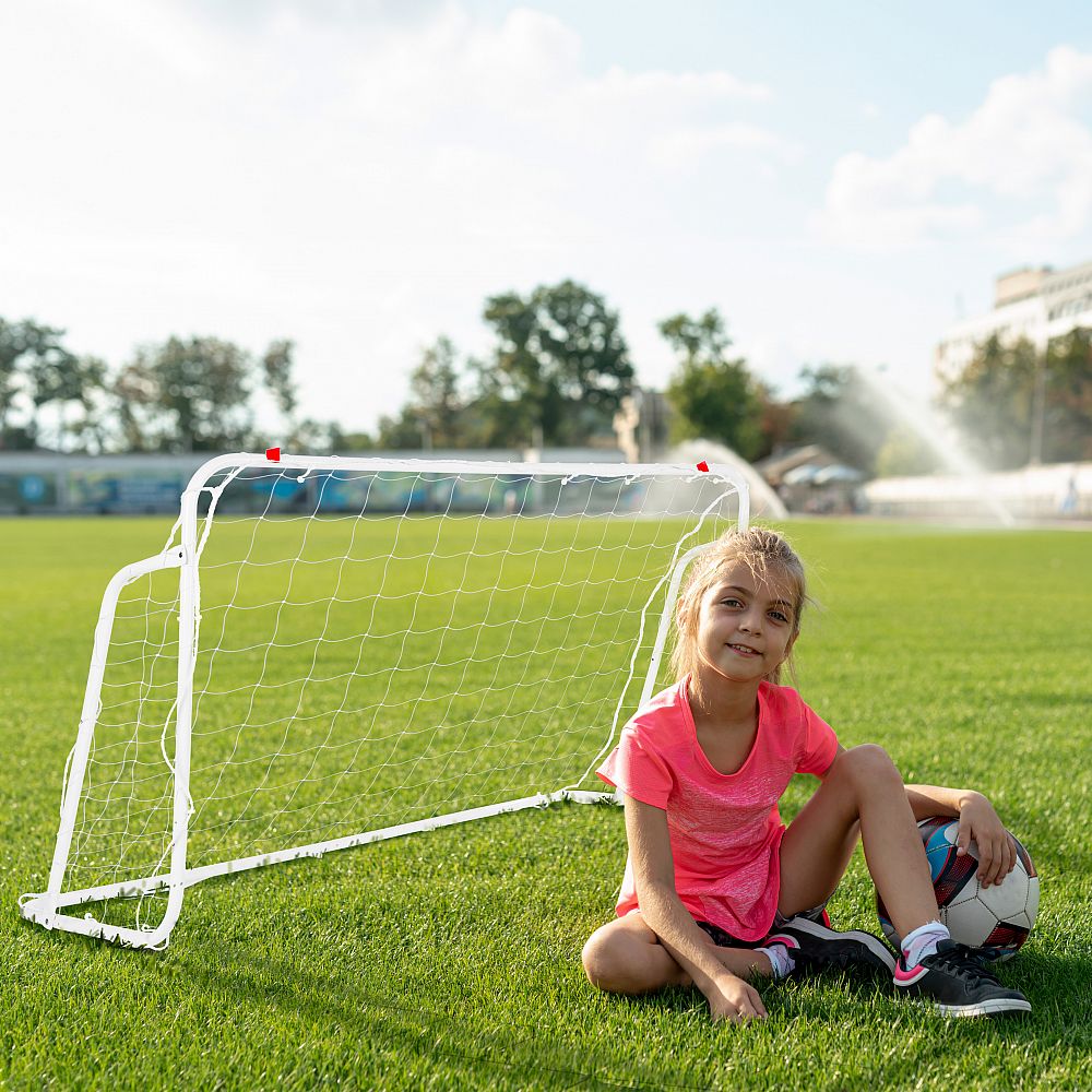 Prenosný futbalový gól NILS NT8150, ktorý sa skvele hodí ako pre tréning na záhrade, tak na väčšom ihrisku pre tréning presnosti prihrávok a striel.