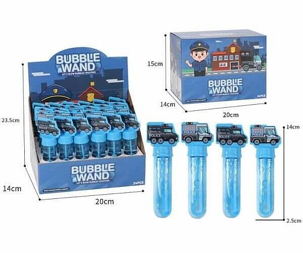 Bublifuk s motivem policejního auta v modré barvě je ideální zábavou pro malé ochránce zákona. Skvěle doplní vaši tématickou oslavu, nebo jenom tak pro radost. Nejlepší zabavení pro děti obzvlášť během léta.Bublinky, bublinky, bublinky nejvděčnější výrobek pro děti.Velikost: 14 cm