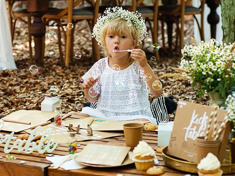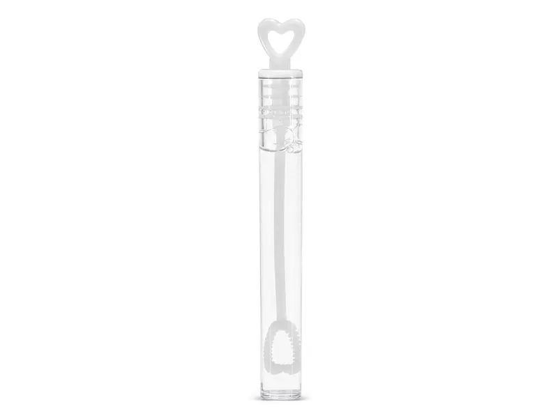 Svadobný bublifuk v bielej farbe so srdiečkom ideálne podčiarkne svadobný zážitok. Keď k tomu pridáte ryžu a bublinky z bublifuku, je obraz dokonalej romantiky na svete.