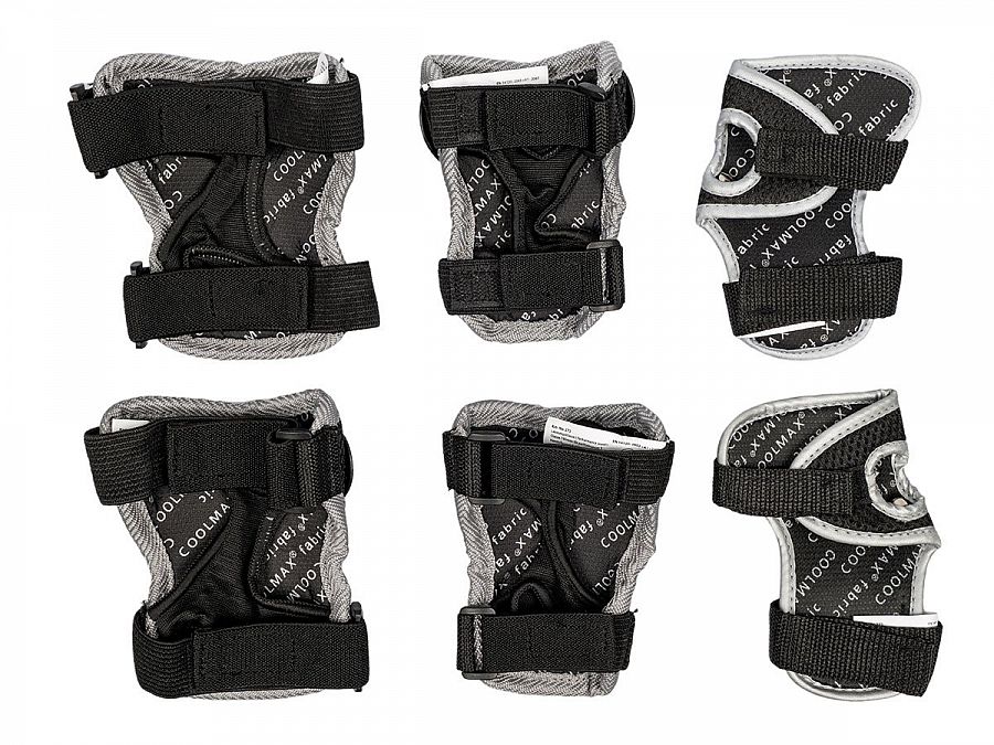 Súčasťou balenia: chrániče zápästia, chrániče kolien, chrániče lakťov - celkom 6 ks chráničov