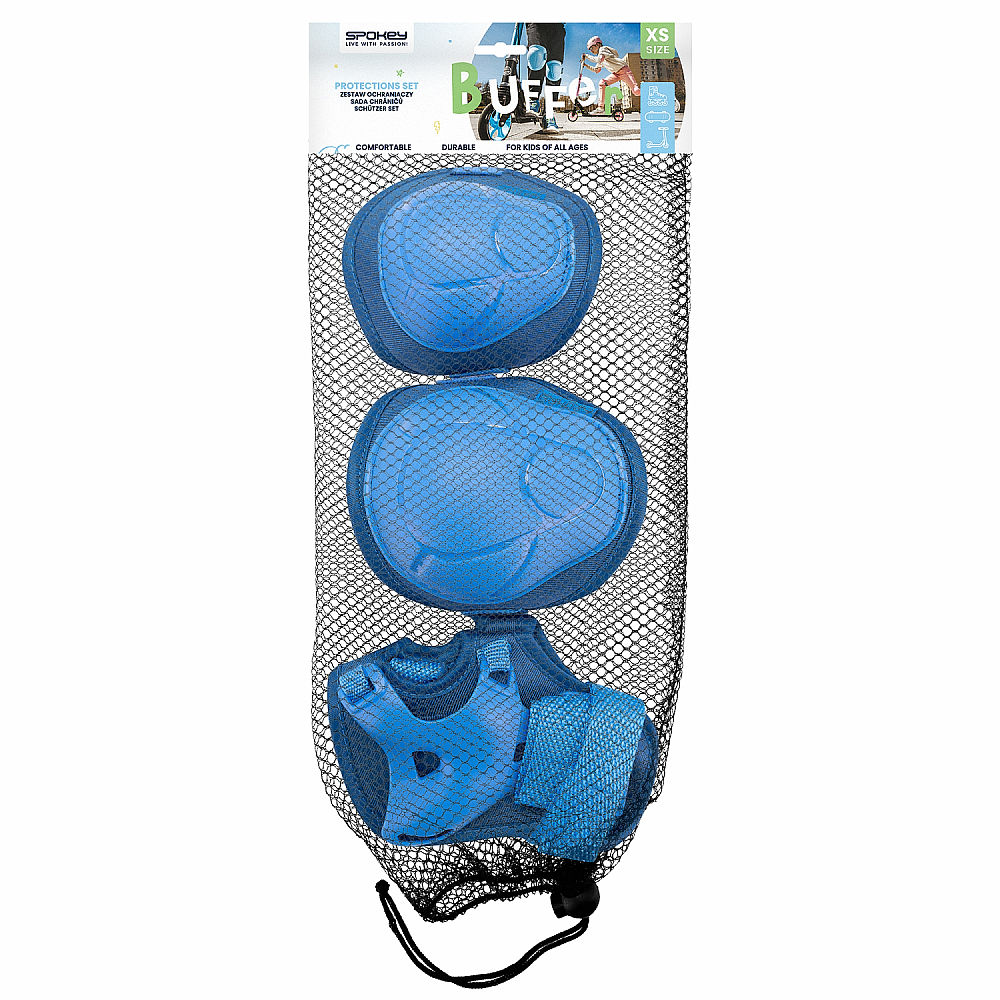 Popis: Spokey BUFFER 3dielna sada detských chráničov, tmavo modré, veľ. XS-M