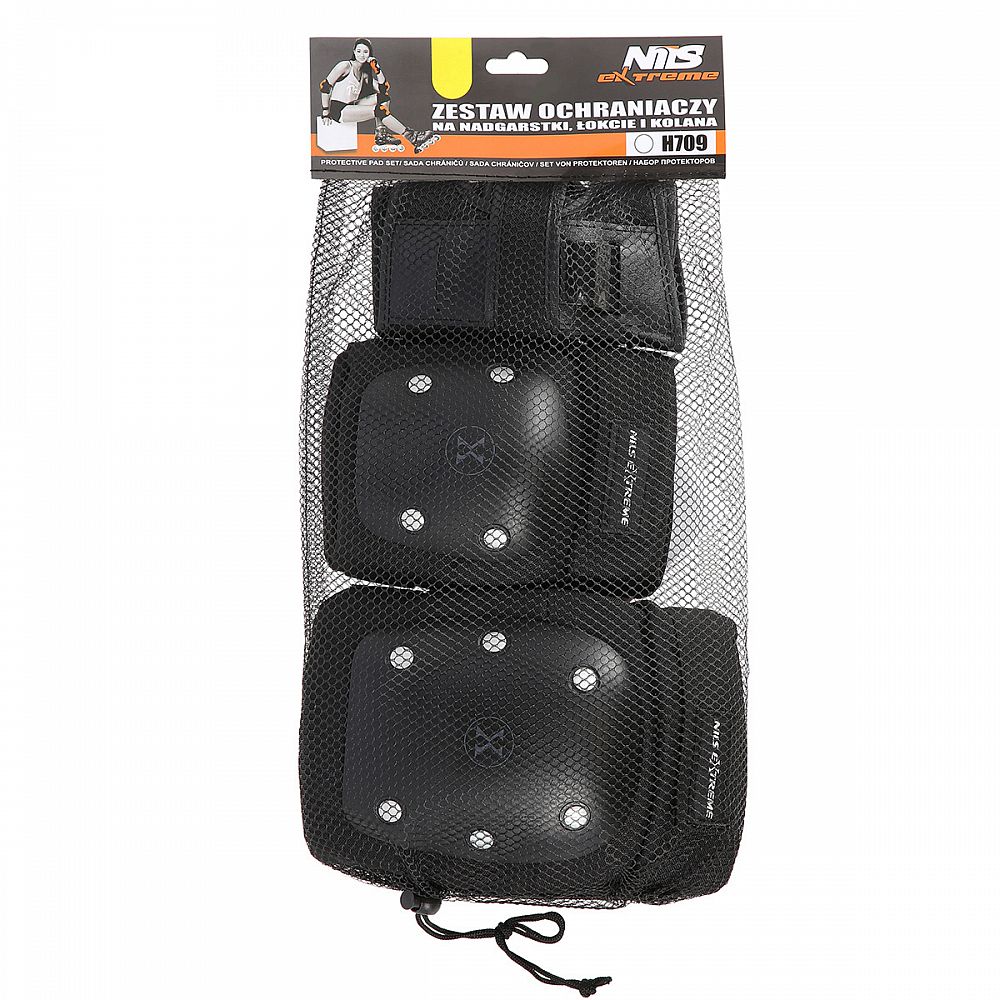 NILS Extreme H709 je kompletná sada chráničov zápästia, lakťov a kolien. Hlavnú ochranu tvorí plastový výlisok, ktorý je pomocou nitov pripevnený k mäkkej a pohodlnej podložke. Chrániče lakťov a zápästia sa pripevňujú pomocou dvoch elastických remienkov so suchým zipsom. Chránič zápästia sa pripevňuje pomocou pevných remienkov so suchým zipsom.