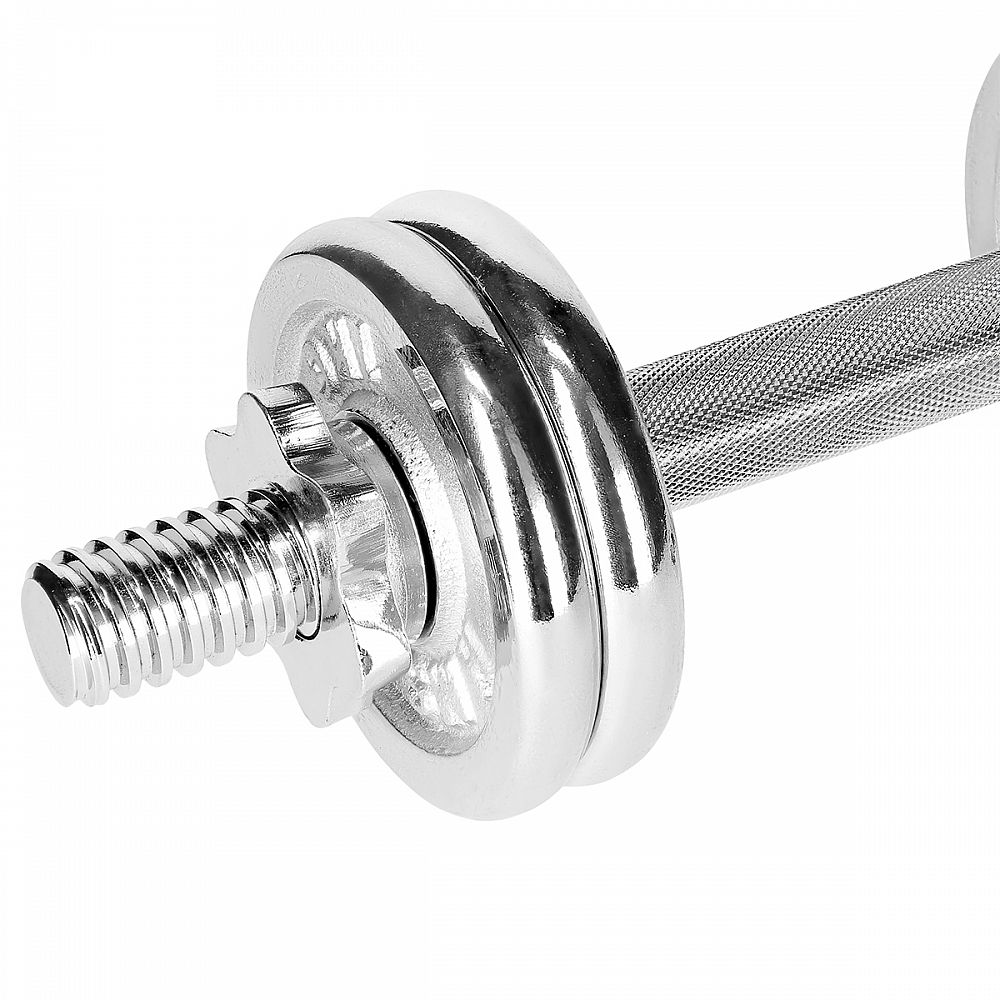 Sada jednoručných činiek v kufríku. Kufrík obsahuje 2 jednoručné hriadele, sadu chrómovaných kotúčov. 4 kusy matiek. Vďaka baleniu v plastovom uzatvárateľnom kufríku, je možné činky jednoducho prenášať a skladovať.