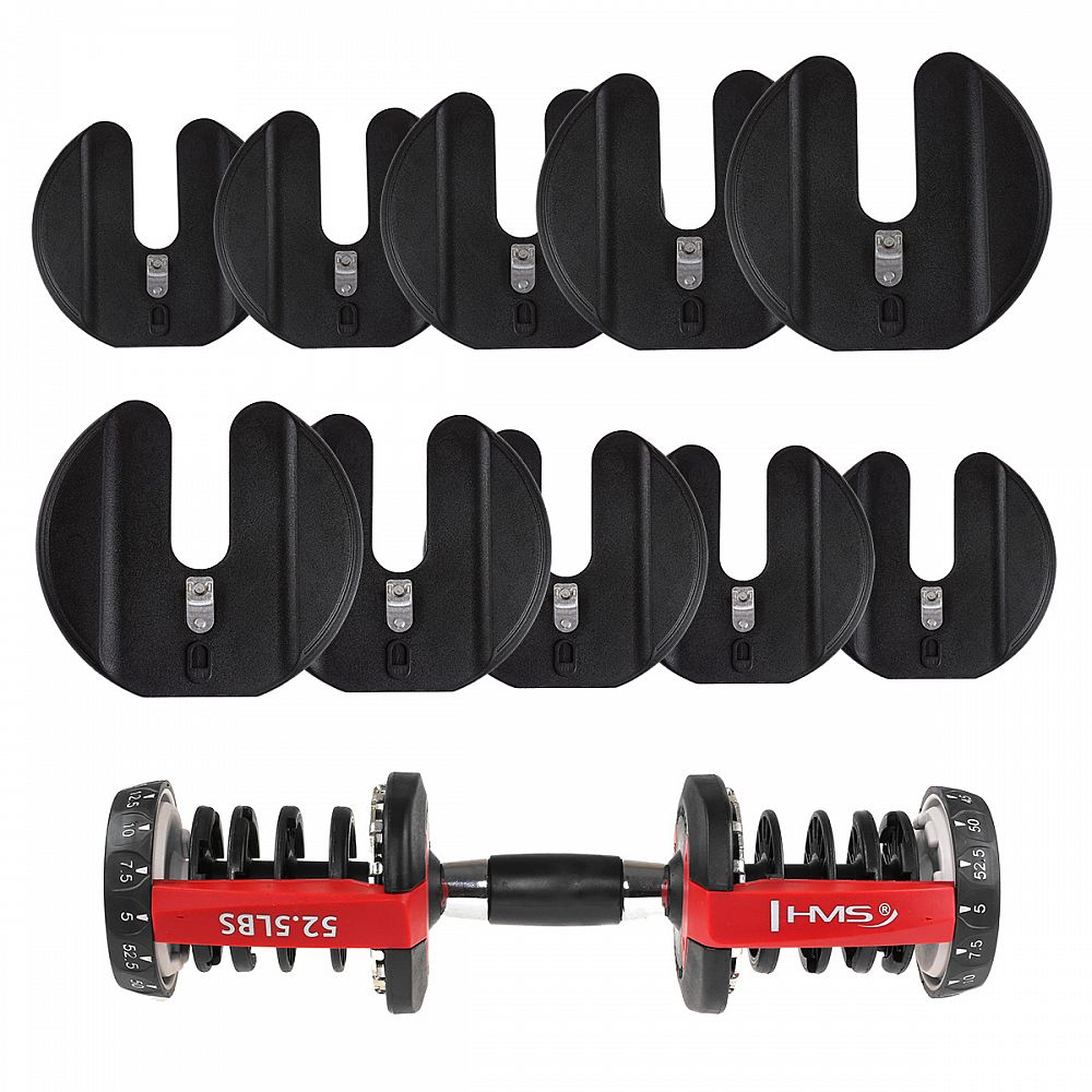 Nastaviteľná činka HMS SR52 je skvelým riešením aj pre náročnejších užívateľov. Inovatívny systém nastavenia záťaže s využitím stojana a dvoch postranných regulátorov je veľmi jednoduchým a hlavne nenáročným riešením pri nastavení potrebnej váhy. Nemusíte teda tráviť čas počas cvičenia zbytočným prehadzovaním kotúčov. Ergonomická rukoväť a využitie tých najkvalitnejších materiálov je zárukou skvelých tréningových výsledkov. Upozornenie: všetka váha závažia je uvádzaná v librách (lbs). 1 libra = 0,45 kg
