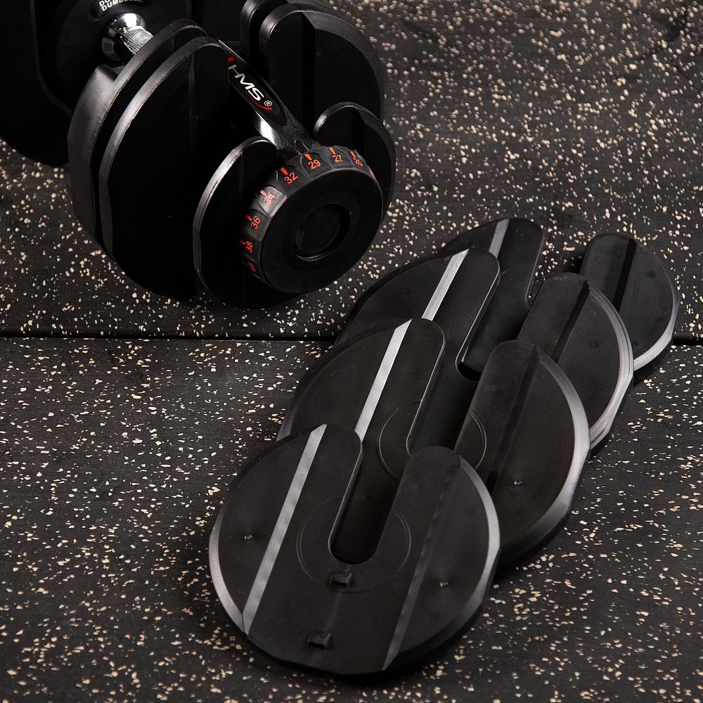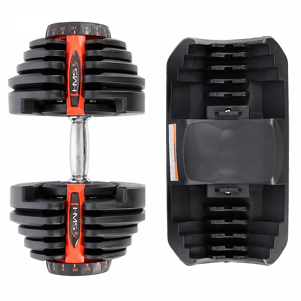SR80 HMS je regulovateľná jednoručná činka. Súprava obsahuje hriadeľ, 10 kotúčov a stojan. Tento prístroj je ideálnym riešením na cvičenie doma, ale s úspechom sa využije aj v posilňovni, kde nahradí celý stojan s tradičnými činkami.