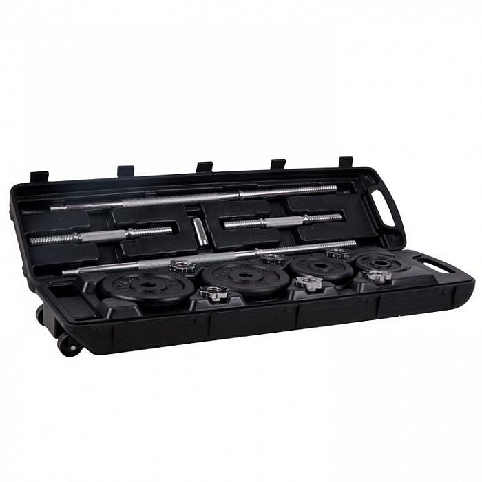 Činkový set v kufríku v 50-tich kilovom prevedení. Hmotnosť činiek možno variabilne upraviť podľa potrieb, prípadne rozšíriť o ďalšie závažie. Kvalitné spracovanie spolu s protišmykovými rukoväte ponúka mimoriadny komfort pri cvičení a kufrík prináša možnosť jednoduchého a jednoduchého uskladnenia / transportu podľa potreby. Kufrík je tiež vybavený plastovými kolieskami pre ľahšie prevoz.