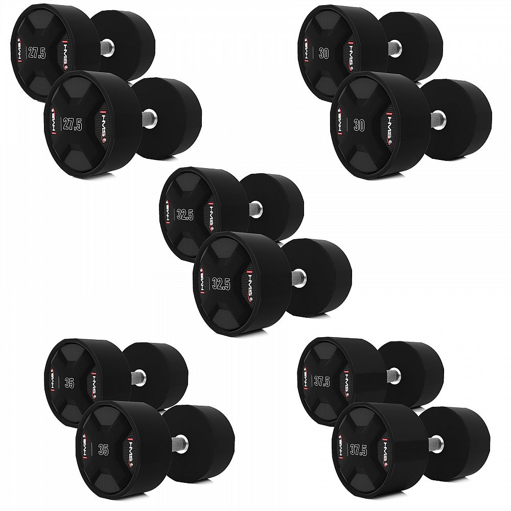 Popis: Sada polyuretánových jednoručných činiek HMS HPC set 2 x 27,5 - 37,5 kg CPU - 325 kg