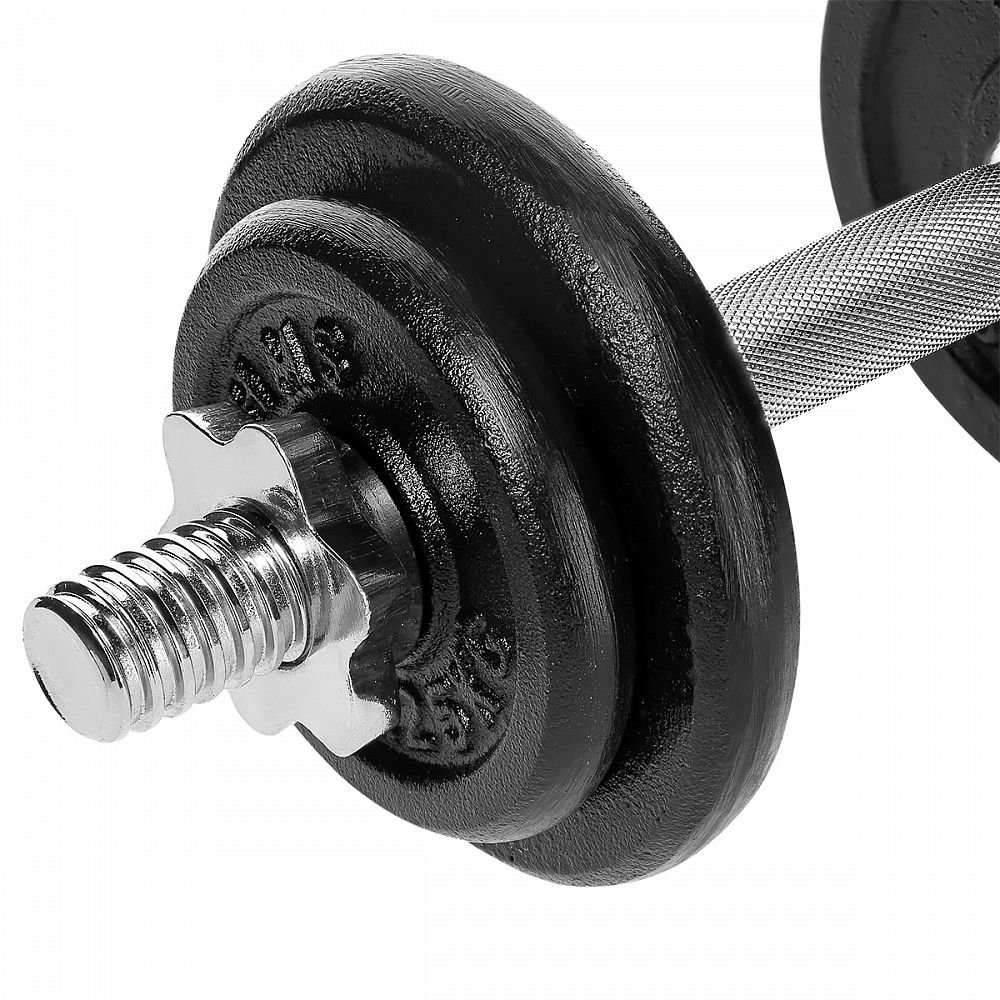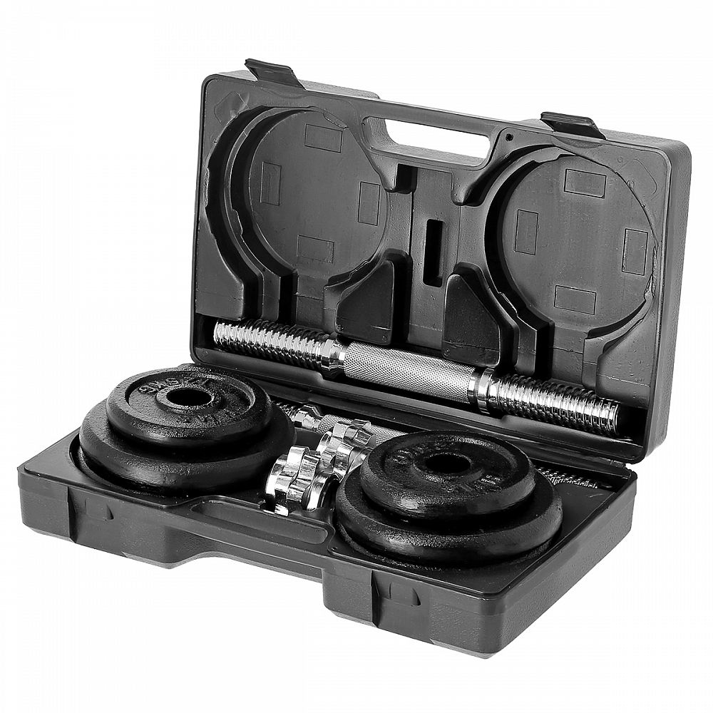 Sada jednoručných činiek v kufríku. Kufrík obsahuje 2 jednoručné hriadele, sadu čiernych kotúčov. 4 kusy matiek. Vďaka balenie v plastovom uzatvárateľnom kufríku, možno činky jednoducho prenášať a skladovať.