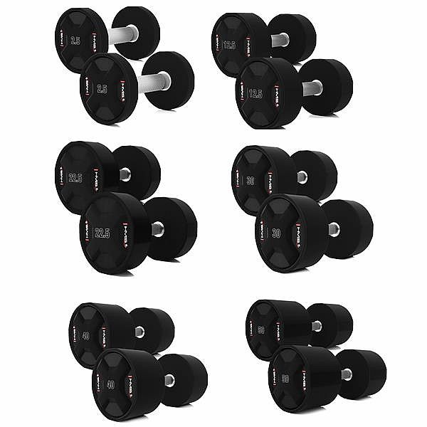 Súprava jednoručných polyuretánových činiek HMS HPC set 2 x 2,5 - 50 KG CPU - 1050 KG