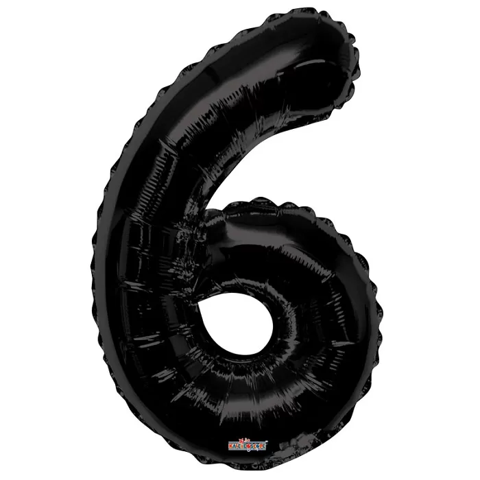 Fóliová číslica 6 v čiernej farbe. Balónik je vhodný na narodeninové oslavy kde môže vyobrazovať vek oslávenca alebo výročia firmy a ďalšie.
