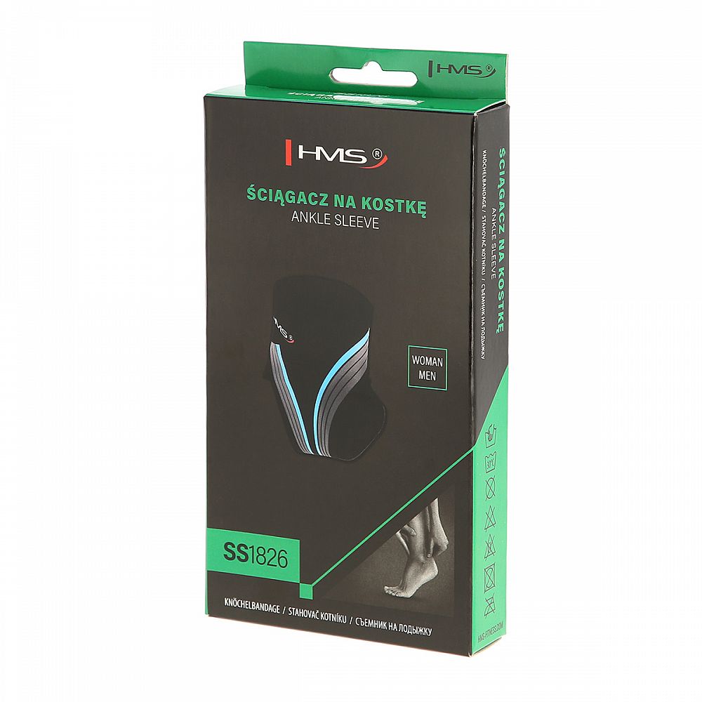 HMS SS1826 je bezšvová bandáž na členok, ktorá má za úlohu spevniť kĺb bez výrazného obmedzenia pohybu. Hlavnou výhodou bezšvového prevedení je nastavenie kompresie presne podľa aktuálnych potrieb. Nasadenie bandáže je veľmi jednoduché. Chodidlom sa postavíme na stred a postupne ovinieme pravú a ľavú stranu okolo členku.